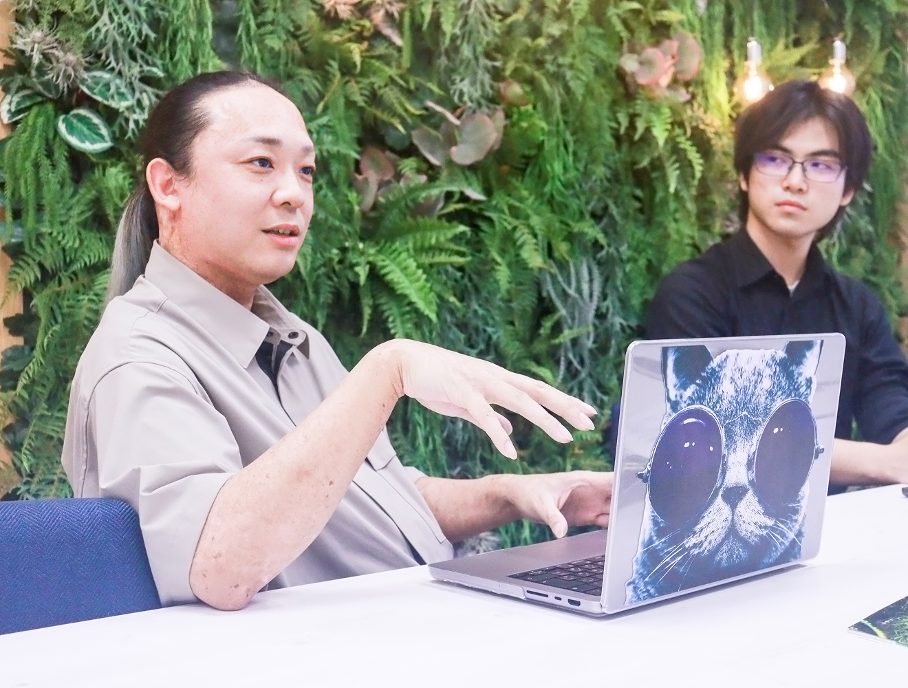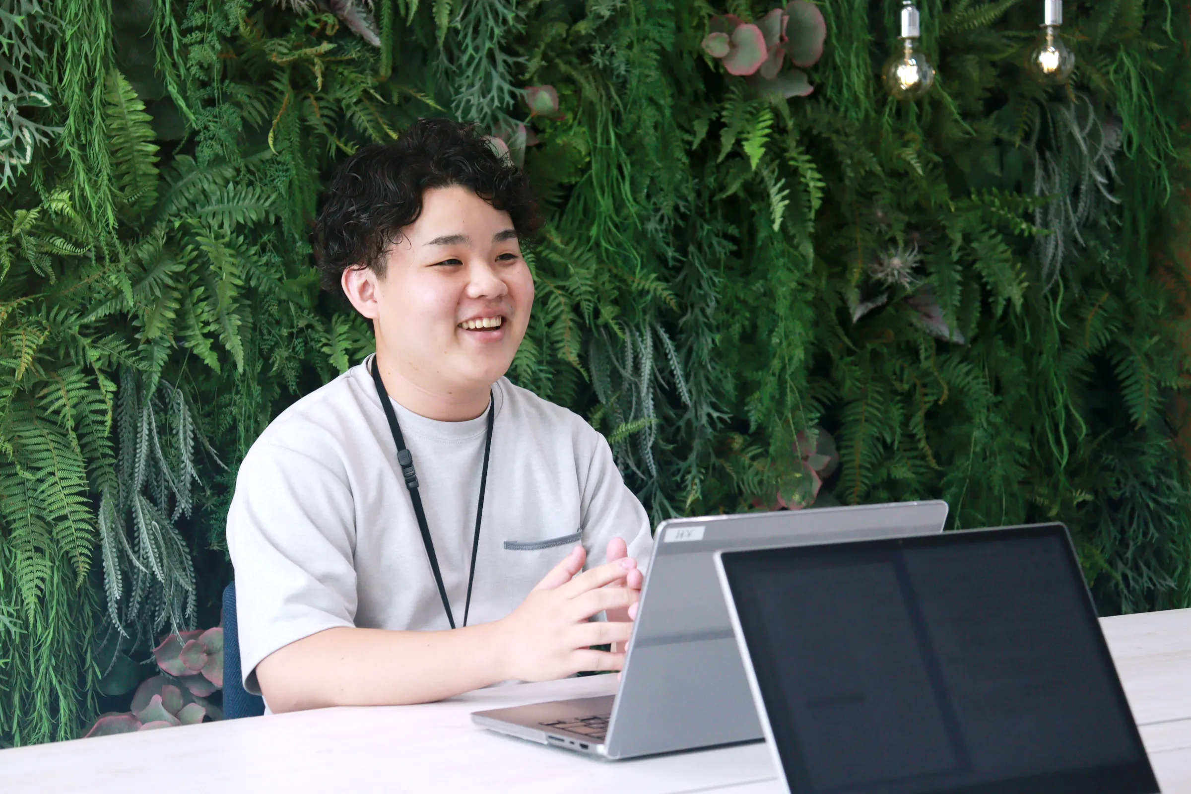 ありがとうございます(笑)。スーツだとちょっと働きにくいなと感じるので、自由な服装はいいですね。